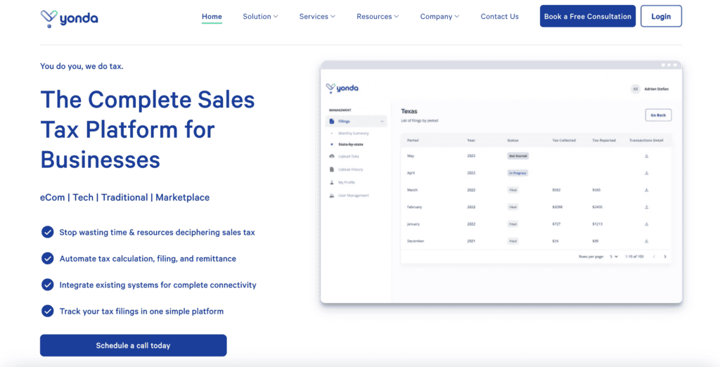 - Automated Tax Compliance: Yonda automates the entire sales tax process, including calculation, sales tax filing, and remittance.