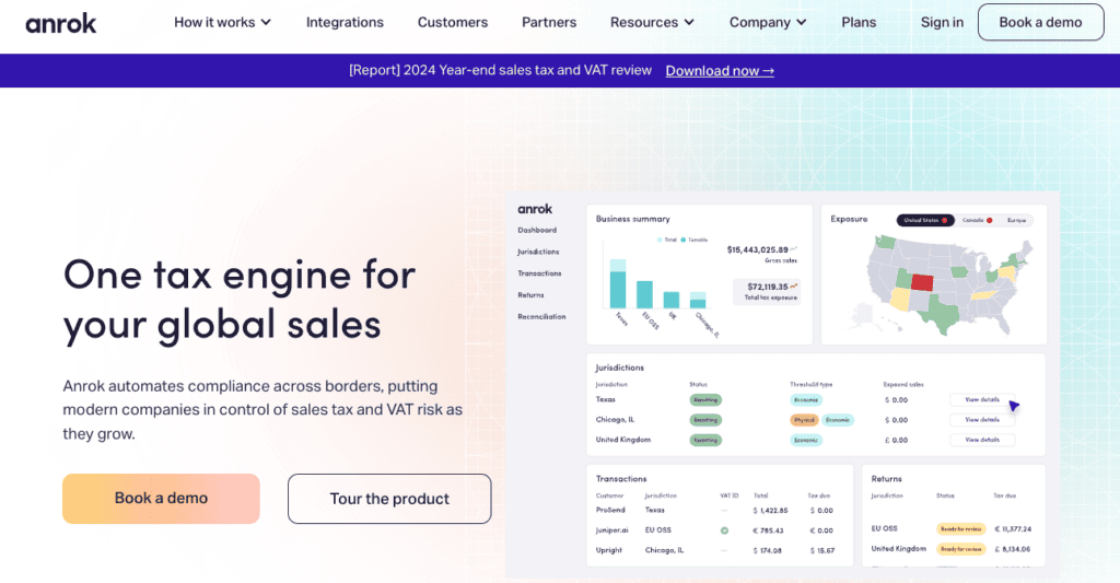Overview of Anrok: Anrok focuses specifically on helping SaaS businesses manage sales tax in a digital environment. It’s designed to be agile and adaptive, catering mainly to tech-savvy startups that need a flexible and intuitive solution.