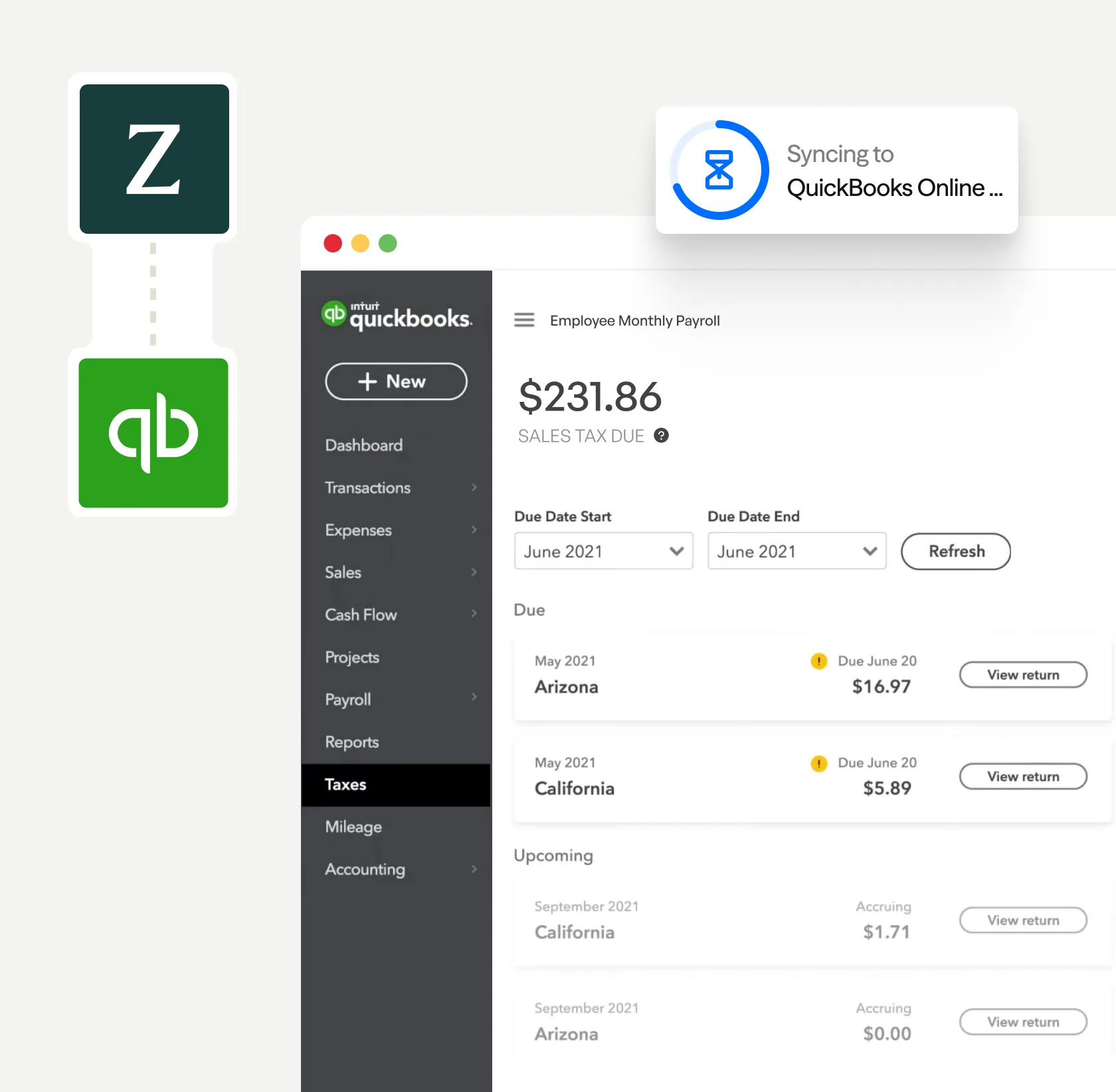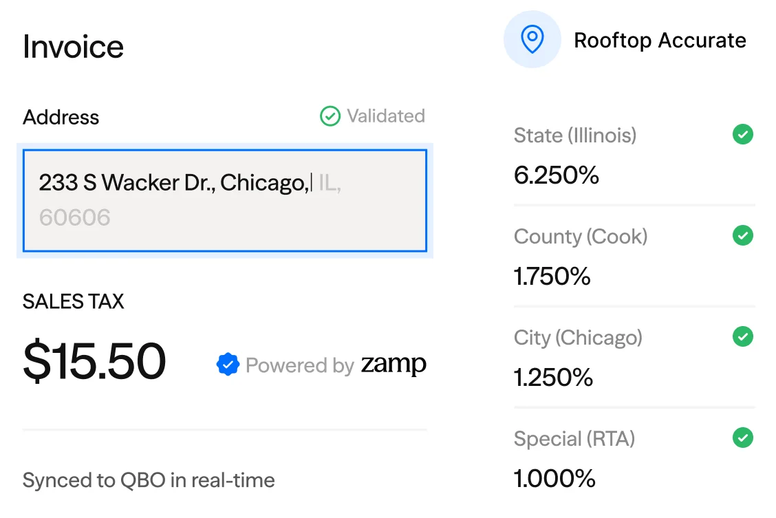 Calculate sales tax more accurately and eliminate manual compliance work with Zamp's integration to QuickBooks Online – included with your Zamp account.