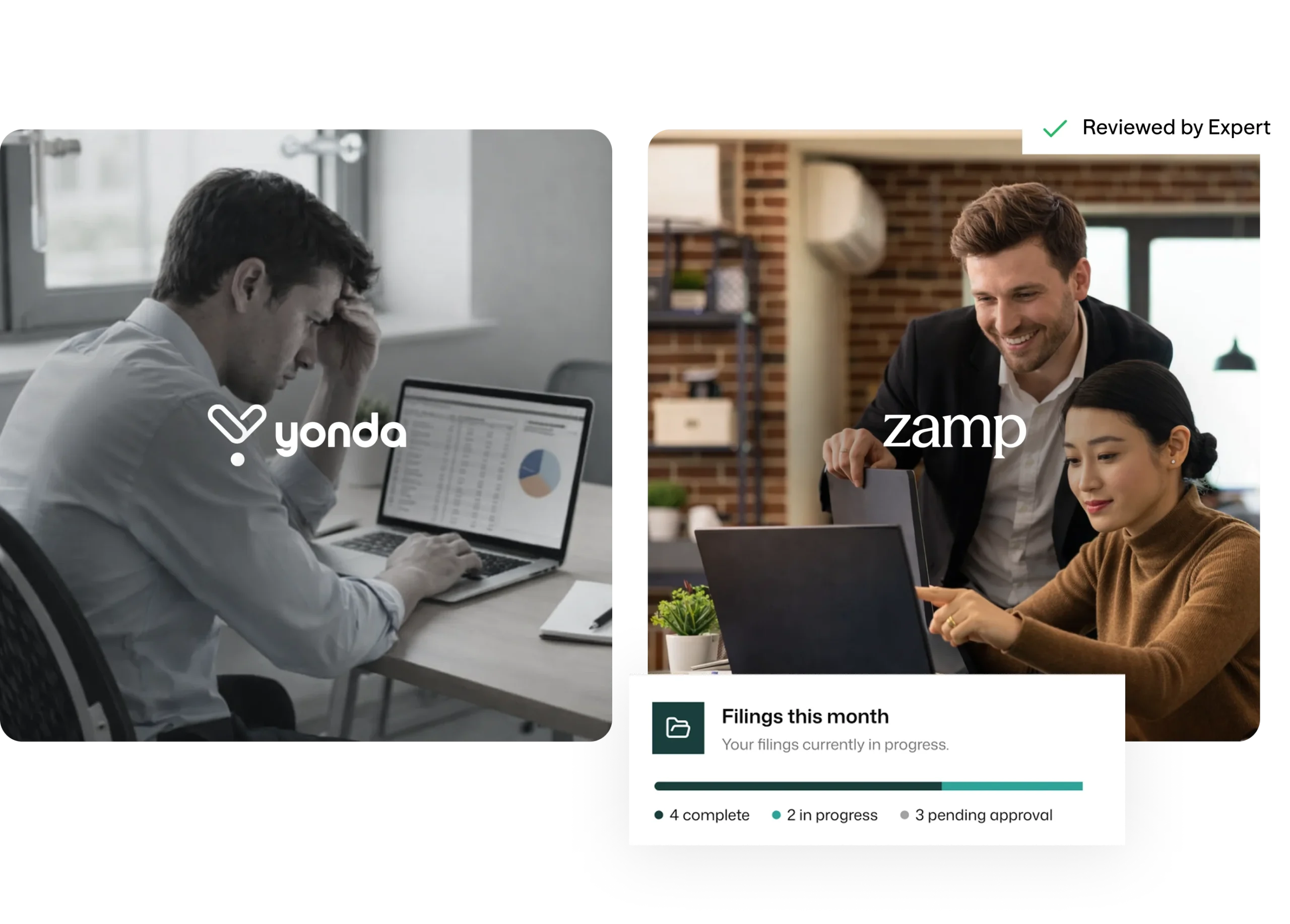 Your filings, registrations, and reporting continue without interruption, with Zamp working closely alongside your team throughout the transition.